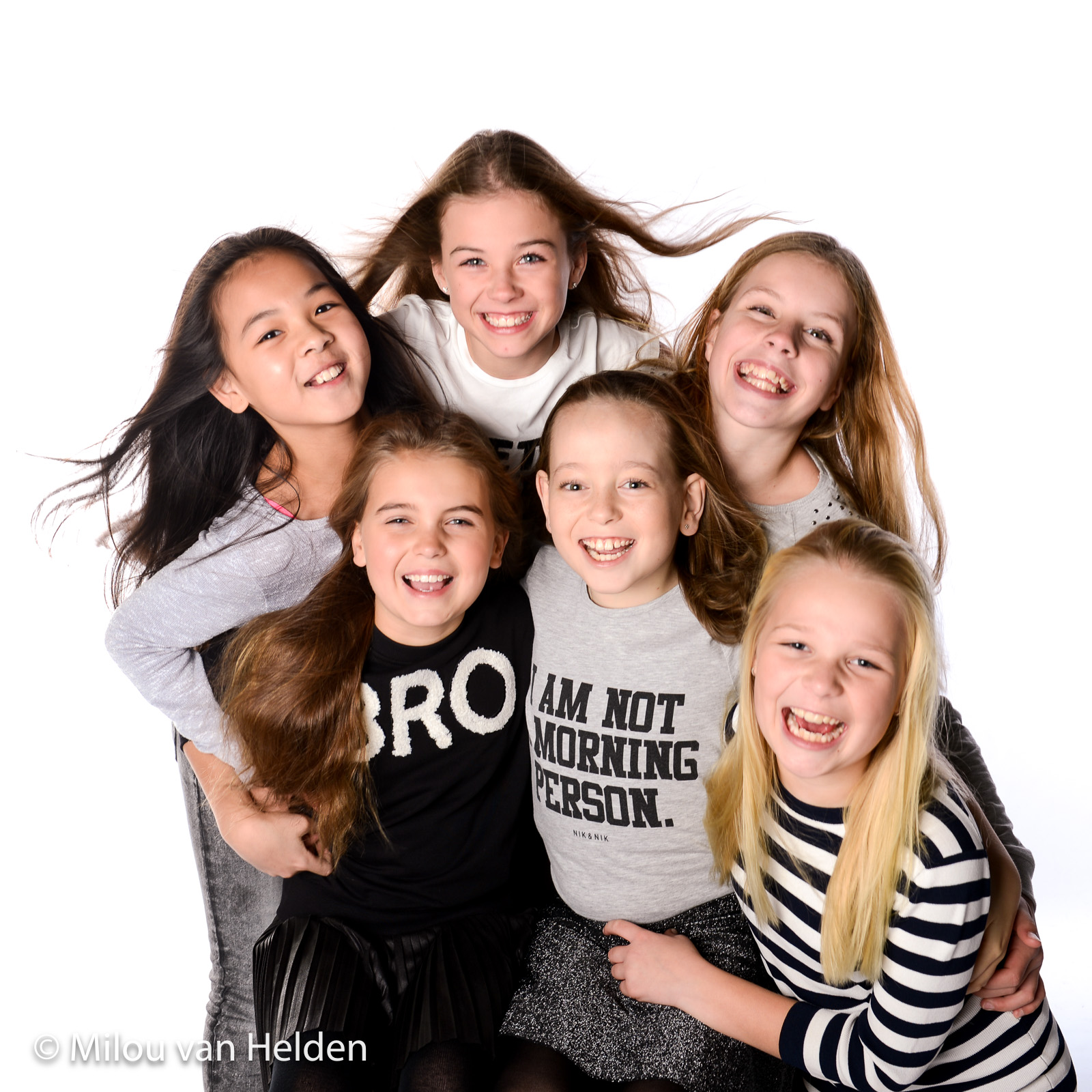 Een fotoshoot op maat waarin ik jullie enthousiast van begin tot eind begeleid. Eigen input? Altijd welkom. Totaal blanco? Prima, ik heb meer dan genoeg ideeën in mijn hoofd. Na afloop van de fotoshoot kiezen jullie thuis met behulp van een online selectie-album de 8 mooiste foto’s uit (bij groepen van meer dan 6 personen ontvangen jullie 1 extra foto per extra deelnemer). Deze zal ik met zorg nabewerken en uiteindelijk ga je dus naar huis met een aantal creatieve, mooie, toffe, spontane, professionele foto’s aangepast op jullie wensen.